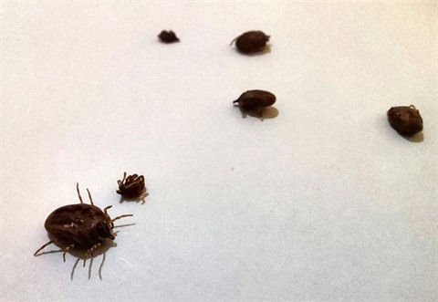 | Des tiques transmettant la fièvre hémorragique de Crimée-Congo (FHCC), le 25 mai dans la province de Dhi Qar, dans le Sud de l'Irak. |