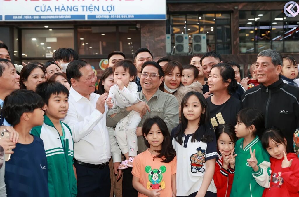 | Le Premier ministre Pham Minh Chinh rend visite aux habitants du quartier de logements sociaux à Hoà Binh, en février 2023. |