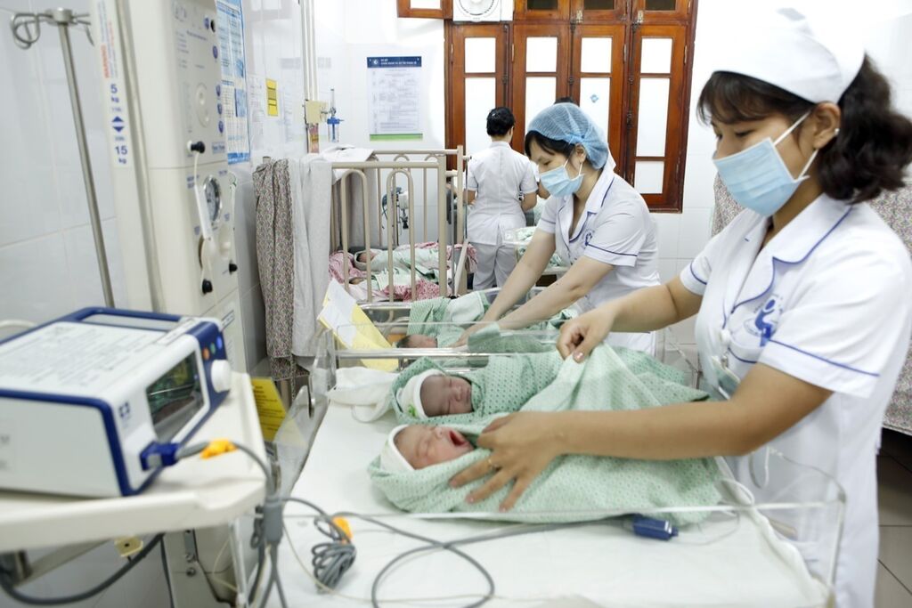 | Soins aux nouveau-nés à l’Hôpital d’obstétrique de Hanoï. |