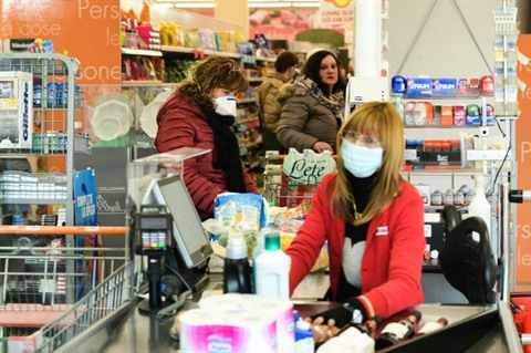 | Des habitants de Casalpusterlengo (Nord de l'Italie) le 23 février. |