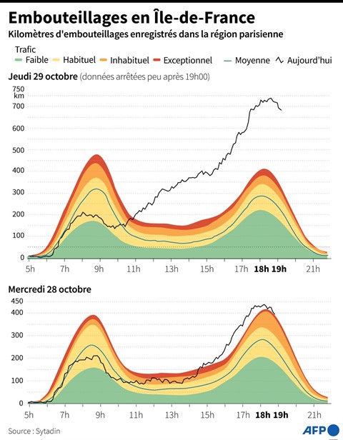 L'approche du confinement a par ailleurs suscité un véritale exode sur les routes de l'Île-de-France, où plus de 700 km de bouchons cumulés ont été enregistrés en fin de journée, après déjà un pic de quelque 400 km la veille, selon le site d'information routière Sytadin.
