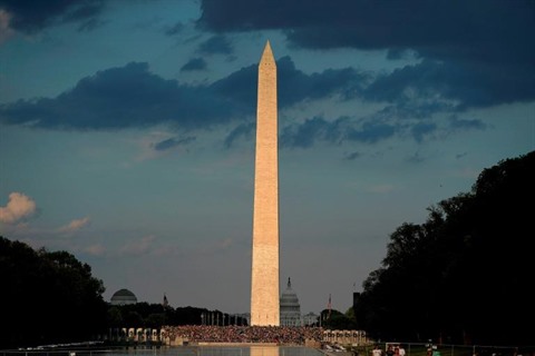 | Les spectateurs se rassemblent le 4 juillet auprès du Lincoln Memorial, à Washington, pour attendre les feux d'artifice de la fête nationale américaine. |