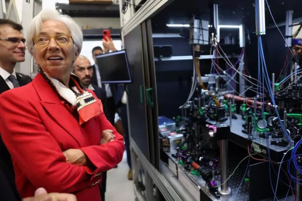 | La présidente de la Banque centrale européenne (BCE), Christine Lagarde, lors d'une visite de l'entreprise Pasqal, spécialisée dans l'informatique quantique, le 17 juin à Massy, près de Paris. |