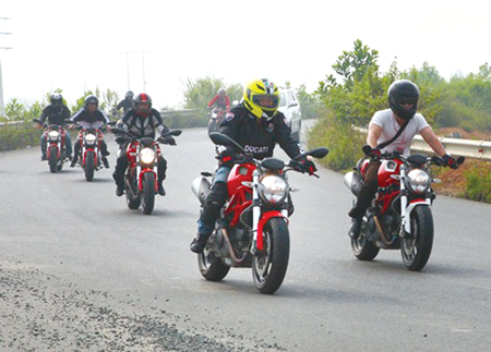 Lac Hoàn Kiêm. La circulation marque une pause, et une centaine de mètres de bitume profite de l’accalmie pour se réchauffer au soleil d’automne. Pas longtemps, puisque de puissants ronflements résonnent et apparaissent quatre énormes cylindrées qui font gicler les rares passants osant quitter leur trottoir. Les pilotes, casques intégraux malgré la chaleur, en tee-shirt, malgré le danger de chute, sont aplatis sur la selle à l’instar de leurs condisciples des grands prix. Regards fiers, perdus dans leur monde des plus de 600 cm3, la croupe fumante, il donne l’image du pilote, du vrai, de celui qui sait faire de la moto...