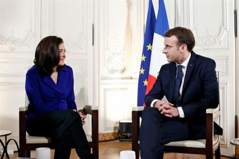 | Le président français Emmanuel Macron et la directrice des opérations de Facebook, Sheryl Sandberg, le 22 janvier à Paris. |