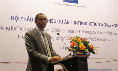 | Le directeur par intérim de l'organisation CARE International au Vietnam, Binima Haile, lors du colloque de présentation d'un projet tenu le 19 janvier à Hanoi. |