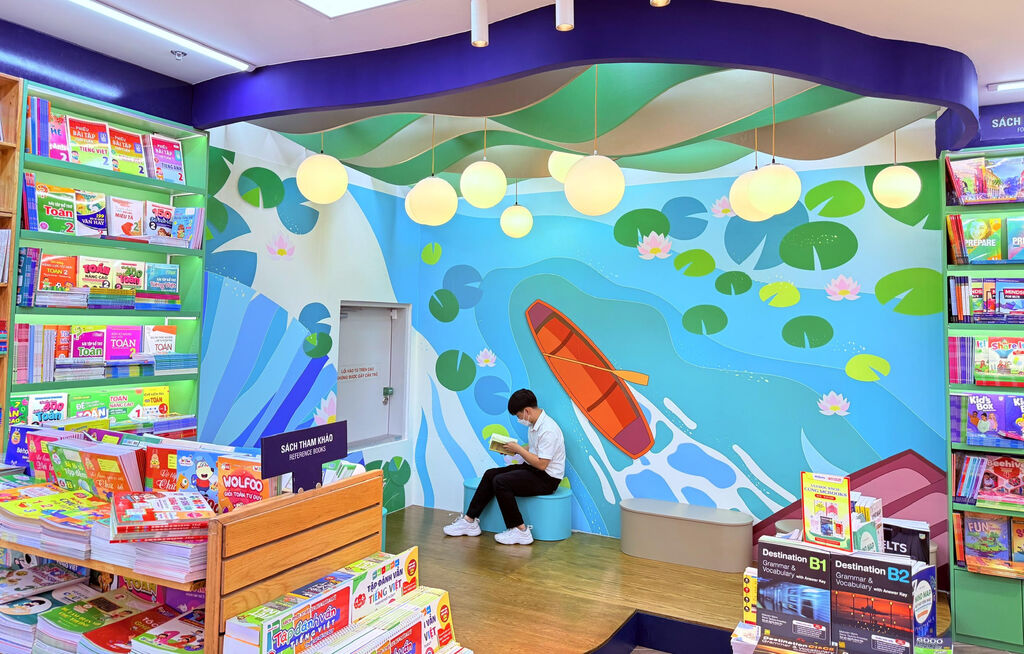 Un des points forts de la librairie est l’espace "Expérience - Lecture", inspiré de l’intersection entre modernité et identité culturelle du delta : barques, vergers et paysages fluviaux typiques du Sud du Vietnam.