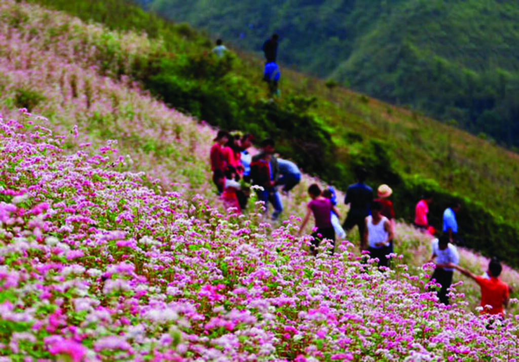 | À Hà Giang, bien des touristes viennent admirer la spectaculaire floraison des sarrasins. |