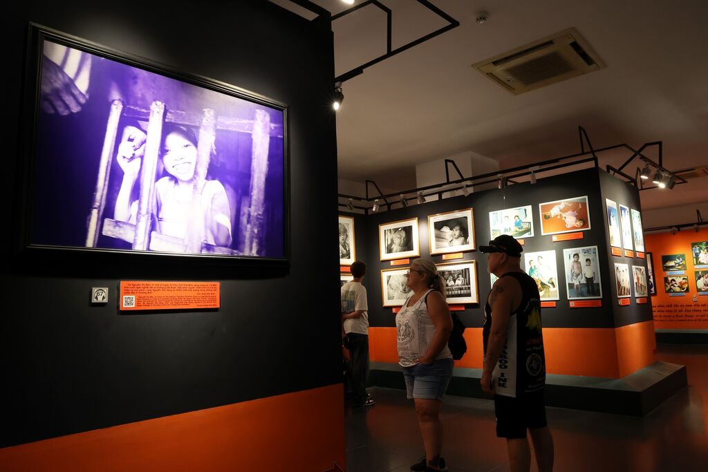 | Des touristes découvrent le Musée des vestiges de guerre à Hô Chi Minh-Ville. |