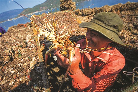 | La joie d’un éleveur de langoustes dans la baie de Xuân Dai, à Phu Yên. |
