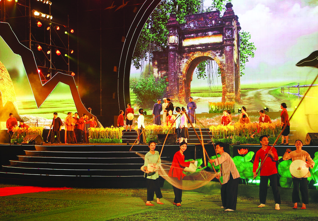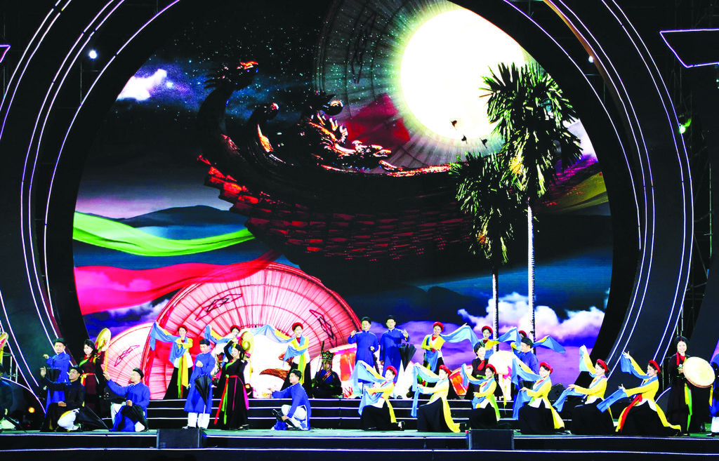 Depuis 2022, chaque week-end, l’espace de la rue piétonne de la ville de Vinh, province de Nghê An, accueille des spectacles de ví et giam organisés par le Centre des arts traditionnels de la province, en collaboration avec les clubs de chanteurs locaux. Ces représentations plongent habitants et visiteurs dans des airs traditionnels, portés par les voix douces et mélodieuses des artistes. Le décor, inspiré de l’image d’un village avec son banian, son quai, sa cour de maison commune et son métier à tisser, crée une atmosphère unique et mémorable.