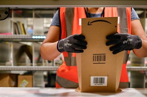 | Préparation d'une commande dans le centre de distribution Amazon d'Augny en Moselle, le 23 septembre. |