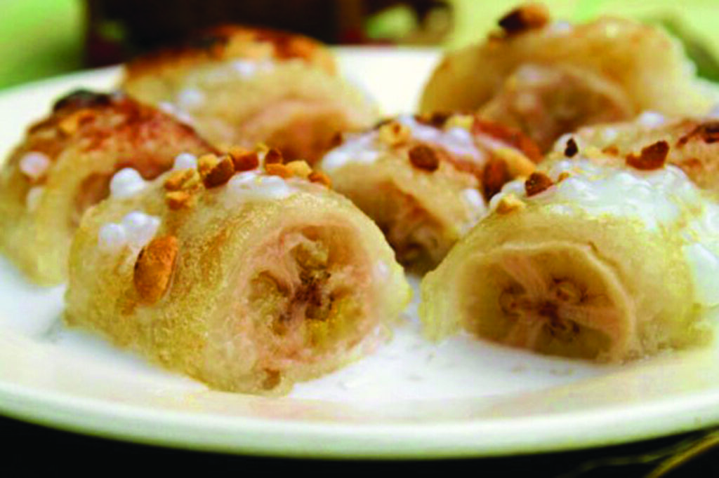 | Le "bánh chuôi nêp nuong", gâteau de banane grillé. |