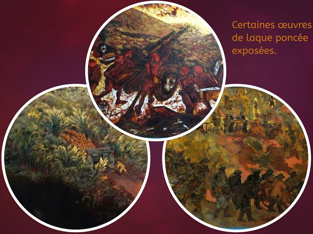 De nombreuses œuvres représentent les images du Président Hô Chi Minh et du général Vo Nguyên Giap, commandant en chef de la campagne historique de Diên Biên Phu.
