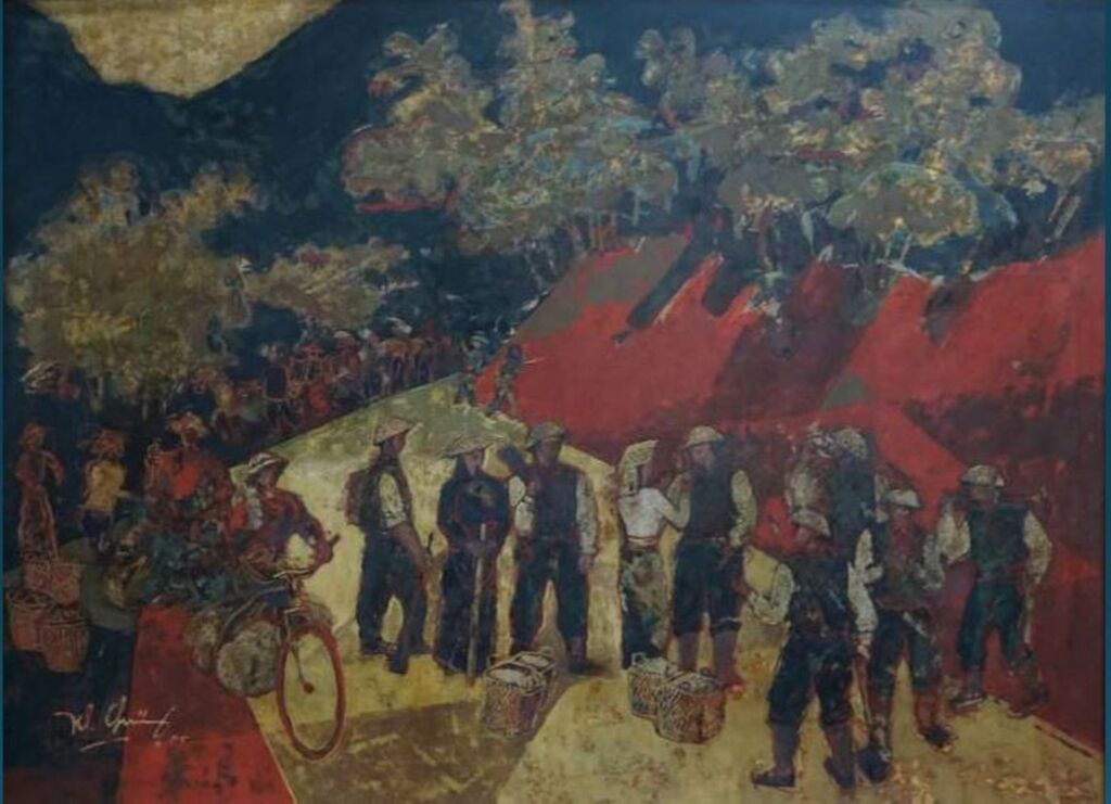 | L’œuvre de laque poncée "En route vers Diên Biên", créée en 2005, de Trân Khanh Chuong. |