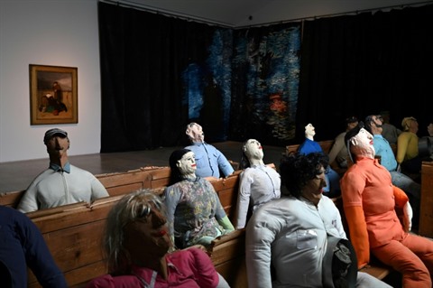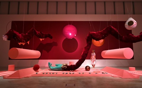 | L'œuvre "DC: Semiramis, 2019" de l'artiste britannique Tai Shani exposée à la galerie Turner à Margate dans le Sud-Est de l'Angleterre, le 26 septembre. |