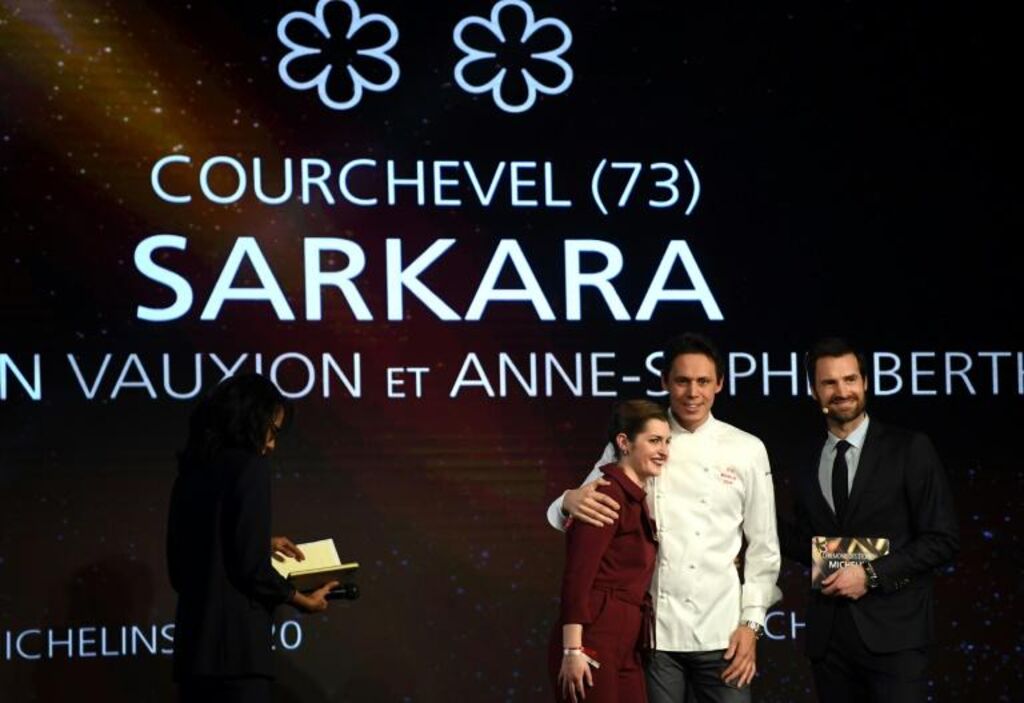 | Le chef Sébastien Vauxion couronné de deux étoiles au guide Michelin, lors d'une cérémonie à Paris. |