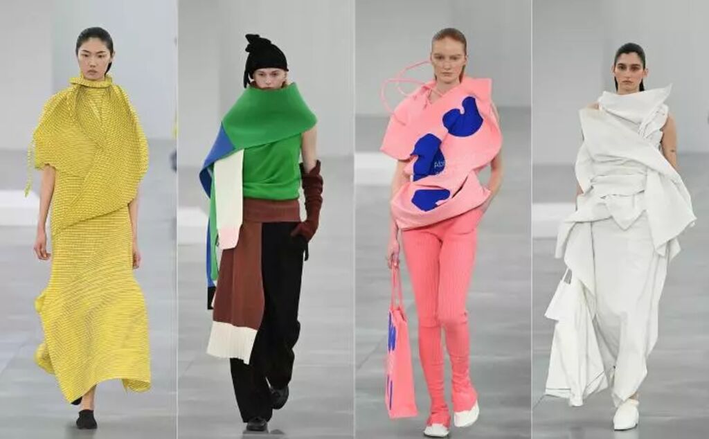 Chez Issez Miyake, Satoshi Kondo a présenté un défilé qui approfondit les thèmes préférés de la marque japonaise : les plis, la superposition de vêtements et l'exploration de matières, cette fois-ci la laine "panini".
