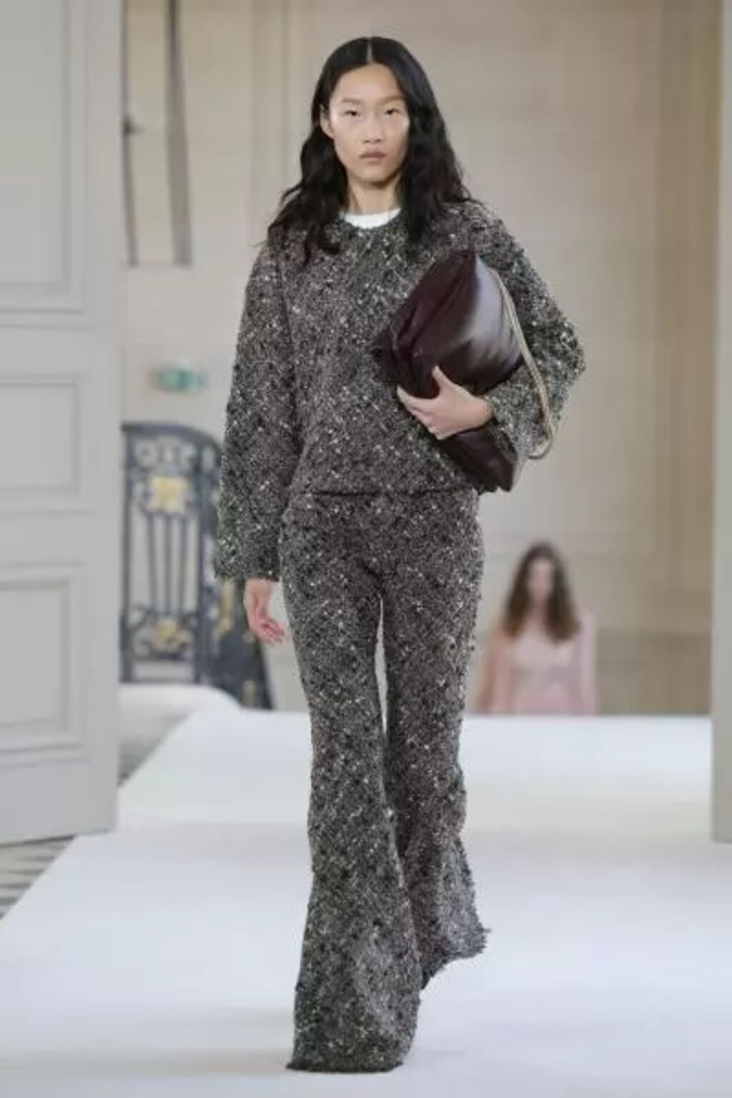 L'Italien Giambattista Valli a de son côté présenté une collection dédiée à "celles qui embrassent l'harmonie entre élégance et liberté", avec de nombreux ensembles en tissu bouclette en fils d'ivoire et de pastels, des robes plus sophistiquées en organza de soie aux couleurs audacieuses, orange ou parme, des tenues plus bohèmes avec des imprimés fleuris, mais aussi des manteaux amples faits de dizaines de milliers de mèches de laine multicolores brodées à la main.