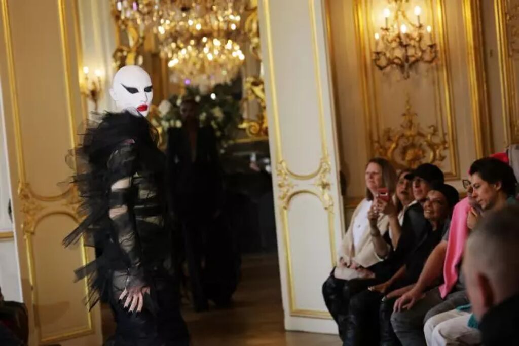 | Défilé de prêt-à-porter féminin automne-hiver 2025-2026 de Matières Fécales, à Paris, le 7 mars. |