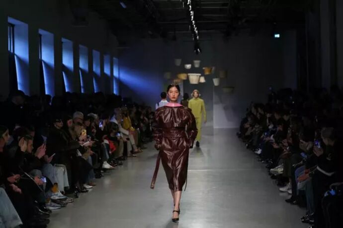 L'avantage de cette matière, c'est de "pouvoir le travailler comme le cuir, le couper comme on veut", a expliqué à la presse Nadège Vanhée, à la tête des collections femmes de la marque française depuis 2014.