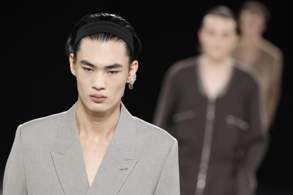 Le défilé Dior Homme par Kim Jones a rendu hommage à l'icône de la danse Rudolf Noureev, honorant le balletcore, l'esthétique du ballet, avec des hommes fragiles et radieux dans des costumes de scène précieux.