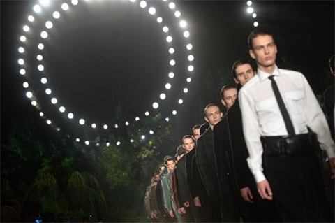 Ils sortent du bois, littéralement, une forêt herbeuse et touffue, où chantent de petits oiseaux, et défilent sur un chemin de terre. Mais cela ne les empêche pas de décliner un nombre non défini de nuances de gris, pour certains agrémentés de reflets brillants. Les hommes de Zegna arborent de confortables casquettes et de nombreux accessoires, dont des sacs en cuir ressemblant furieusement à des sacs à dos mais portés devant.