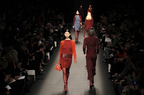 Astucieuse mise en scène : les filles, dont les très longs manteaux étirent encore la silhouette, ne sont pas encombrées, évoluant avec grâce autour du train rutilant. Et les sacs, qui font l'essentiel du succès de la marque, bénéficient de leur propre lumière.