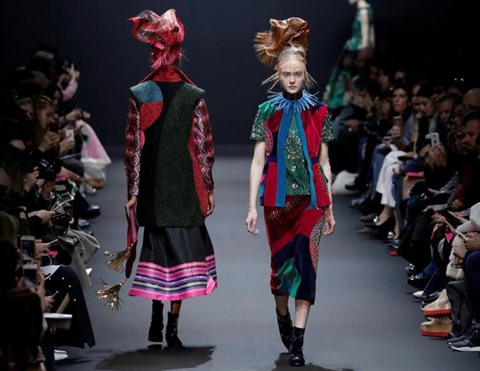 | Le défilé du créateur Manish Arora, lors de la Fashion Week de Paris, le 2 mars 2017. |
