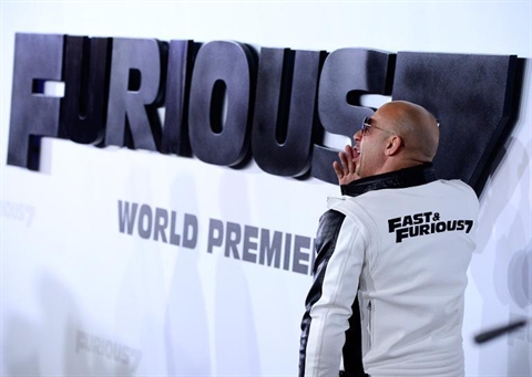 | L'acteur Vin Diesel à la première mondiale du film + Fast and Furious +, le 1er avril à Hollywood, en Californie. |