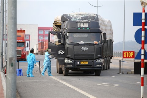 | Désinfection d'un camion traversant le poste frontalier international de Mong Cai, province de Quang Ninh. |