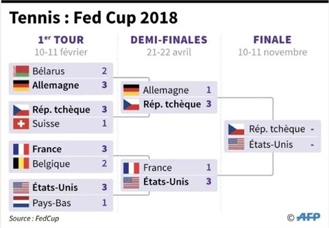 | Tableau des résultats du 1er tour et des demi-finale de la Fed Cup 2018. |