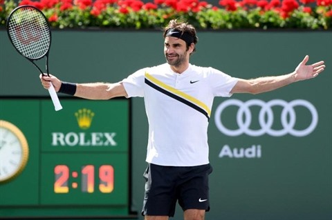 | Roger Federer à l'issue de sa victoire sur le jeune Croate Borna Coric à Indian Wells, en Californie, le 17 mars. |