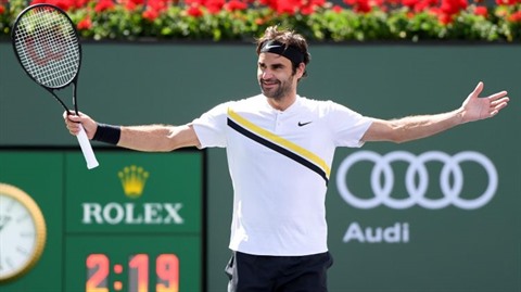 | Roger Federer à l'issue de sa victoire sur le jeune Croate, Borna Coric, à Indian Wells, en Californie, le 17 mars. |