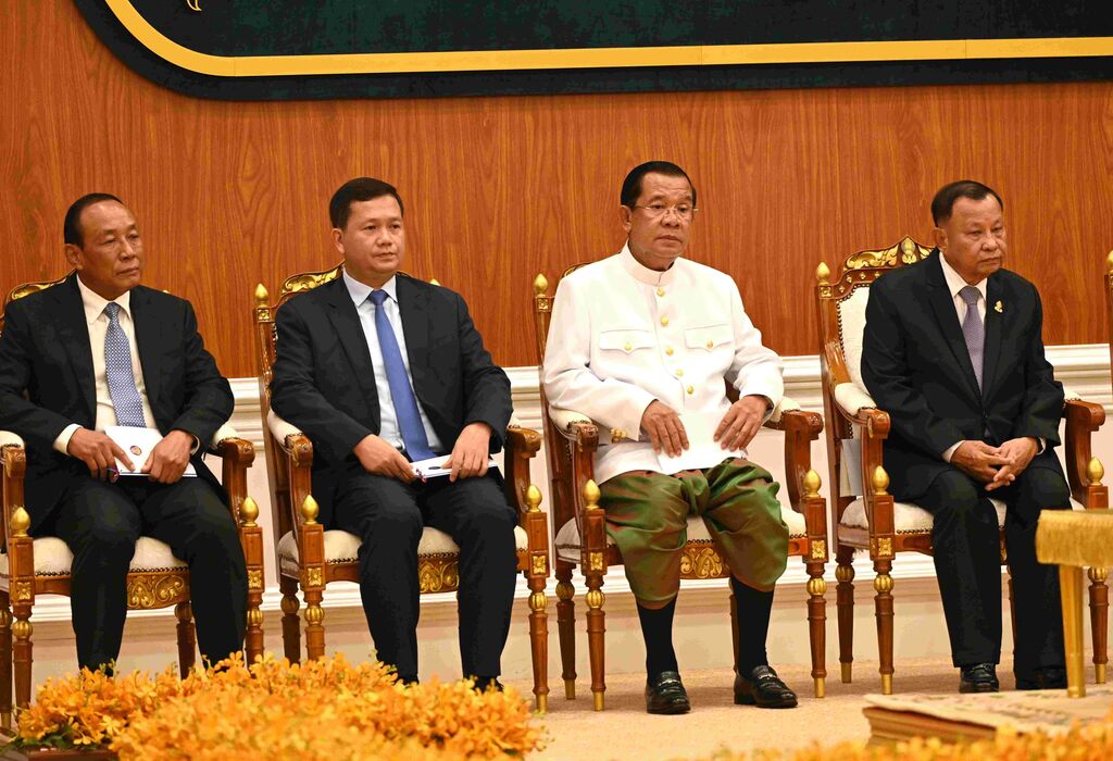 | Le président du Sénat cambodgien, Samdech Techo Hun Sen (2e à droite) lors de l'ouverture du Sénat du Cambodge. |