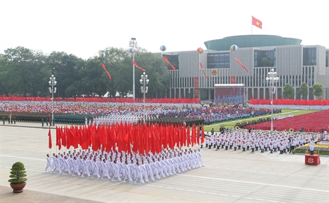 | La grande parade sur la place Ba Dinh, à Hanoi, pour célébrer la Fête nationale. |