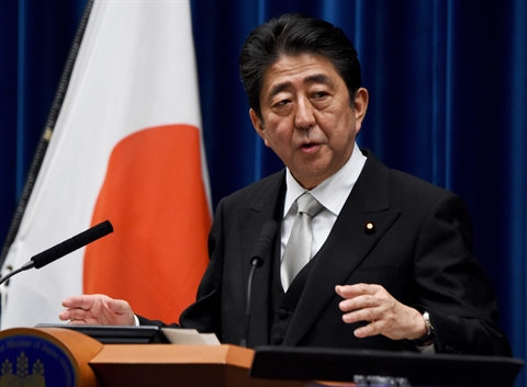 | Le Premier ministre japonais Shinzo Abe lors d'une conférence de presse, le 1er novembre à Tokyo. |