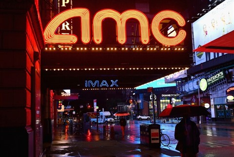 | Un multiplex AMC fermé dans le quartier de Times Square, à New York, en octobre 2020. |