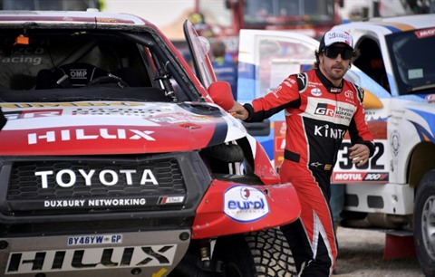 | Fernando Alonso, pilote d'une Toyota sur le dernier Dakar-2020, le 15 janvier à Shubaytah, en Arabie saoudite. |