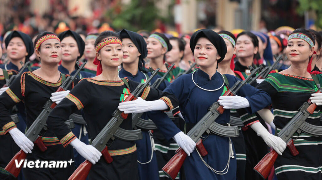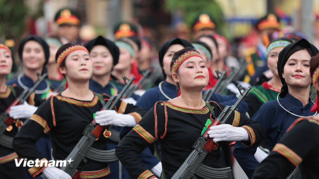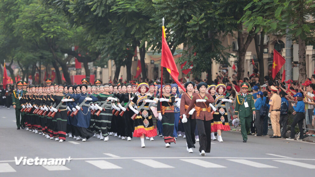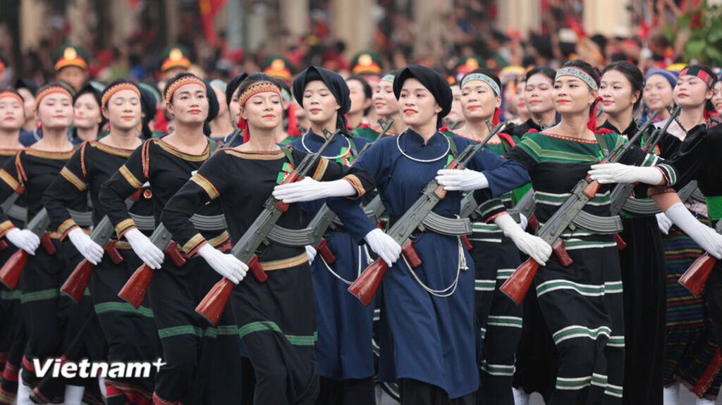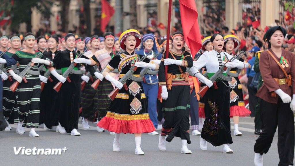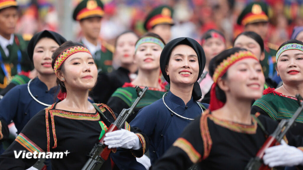 | Les 54 ethnies du Vietnam défilent en rangs unis, porteurs d'un message de paix, de diversité et de cohésion nationale. |