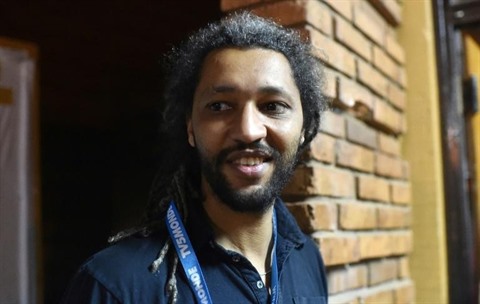 | Le réalisateur franco-sénégalais Alain Gomis, le 1er mars 2017 à Ouagadougou. |