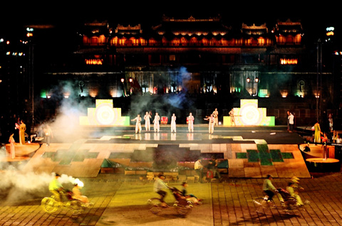 | Un numéro de représentation artistique lors du Festival de Huê 2010. |