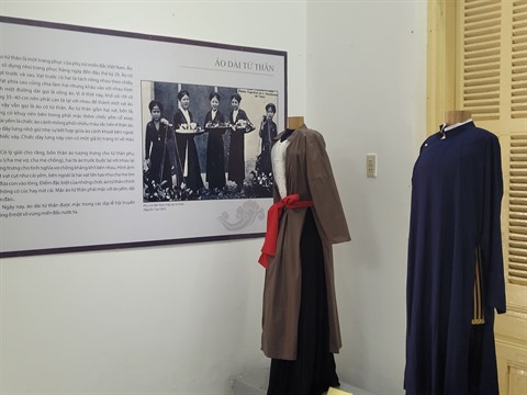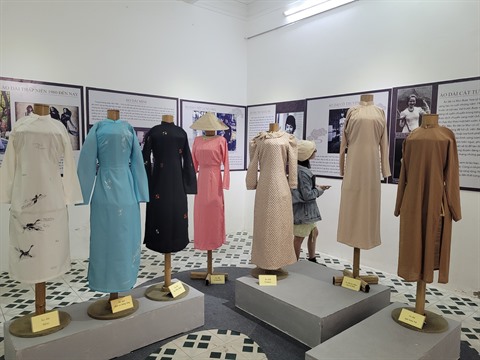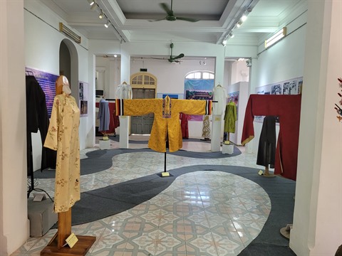 La galerie présente 40 ensembles d’ao dài et de précieux documents montrant la diversité des modèles et expliquant le processus de création de l’ao dài de Huê à travers les époques.