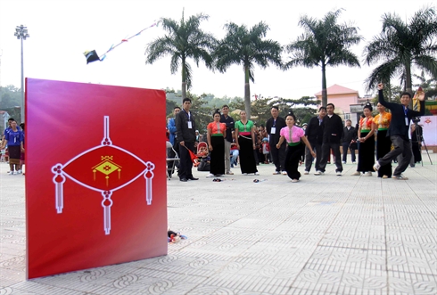 | Pour les minorités ethniques Muong, Tày, H’Mông et Thái, le "ném còn" est un des jeux qui font le succès de toute fête. |