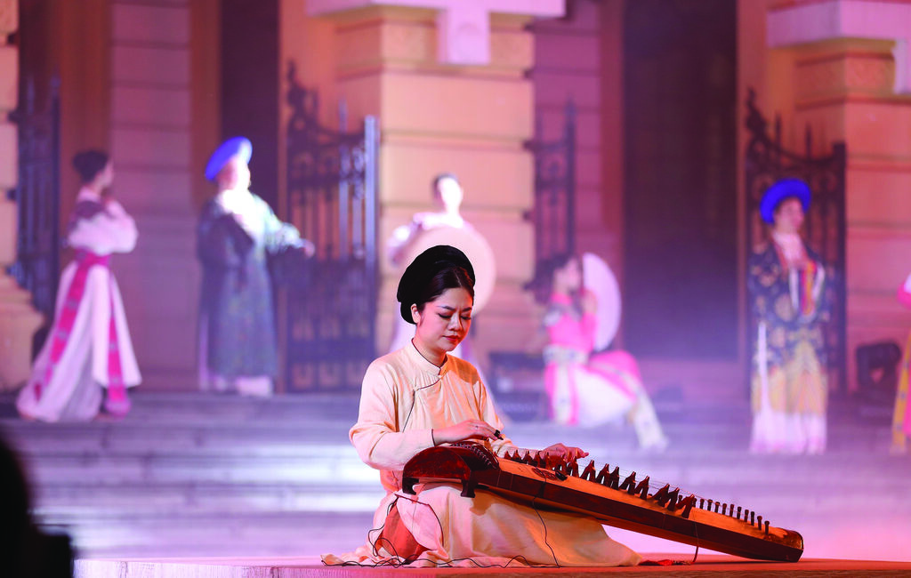 | Artiste jouant de la cithare traditionnelle vietnamienne lors de la cérémonie d'ouverture du festival. |