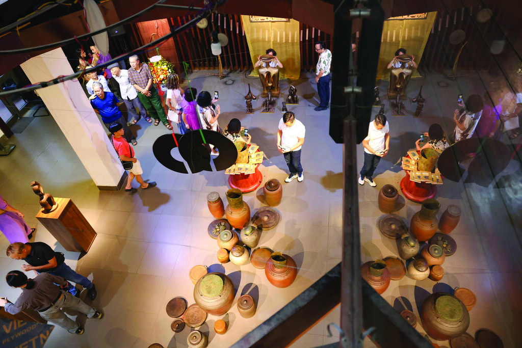 Au Musée national d’histoire du Vietnam, le pavillon intitulé “Rông ran lên mây“ (Dragons et serpents s’élevant vers les nuages) a présenté des maquettes du musée réalisé à partir de divers matériaux tels que le bois, la céramique et la porcelaine, attirant un public nombreux.
