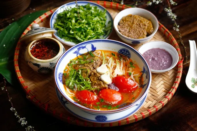 Les spécialités du Sud comme le lâu mam (fondue à base de poisson fermenté), le ca loc nuong trui (le poisson-tête de serpent grillé) et le banh xèo Nam bô (sorte de crêpe vietnamienne fourrée) complètent l'extravagance culinaire.