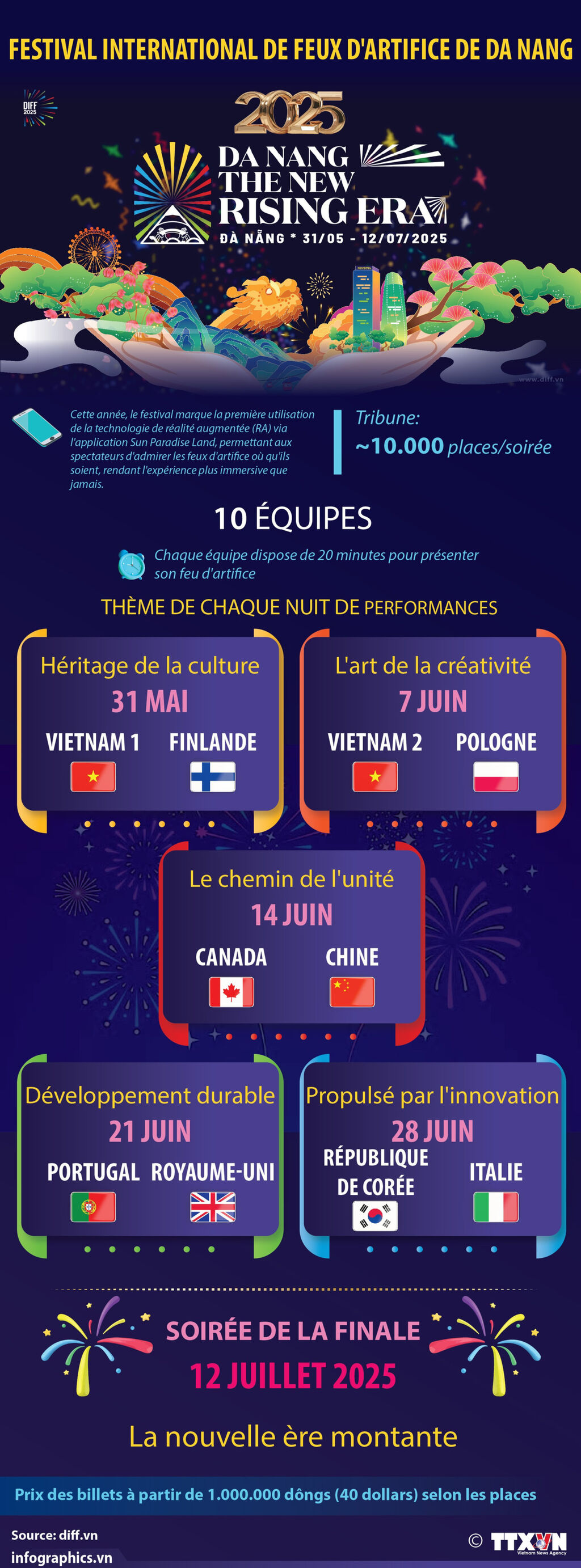 >> Le Festival international de feux d'artifice de Da Nang 2025 aura lieu du 31 mai au 12 juillet