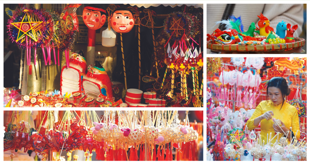 En plus des jouets et des décorations, la rue Hàng Ma propose également une variété de délicieuses spécialités culinaires de la Fête de la mi-automne. Les stands de gâteaux de lune offrent une multitude de saveurs et de garnitures, du plus classique au plus moderne. Les visiteurs peuvent déguster ces délicieux gâteaux tout en se promenant dans la rue, ajoutant ainsi à l’atmosphère de la fête.