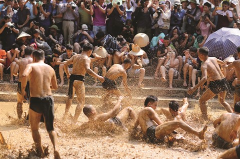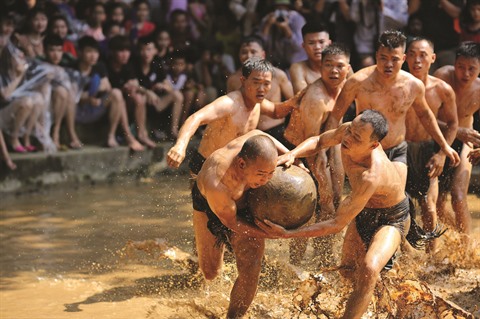 Vât câu bùn est une sorte de partie de rugby où le ballon est une grosse boule en bois de 20 kg. Seize jeunes hommes costauds sont répartis en deux équipes. Tous sont célibataires, issus de familles qui n’ont pas connu de deuil depuis trois ans. Dix jours avant la lutte, les participants doivent s’abstenir de boire de l’alcool, de manger de l’ail, des échalotes, d’avoir des relations sexuelles.